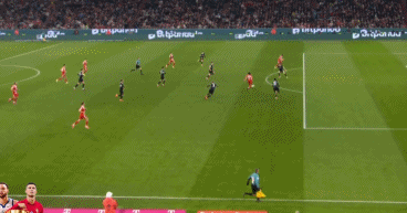 比赛第33分钟,诺丁汉森林开出角球,伊戈尔·热苏斯头球后蹭,穆里略转身扫射将球打进。此球因恩多耶在门前有越位干扰的嫌疑,经过VAR审核后,主裁判判定进球有效,利物浦0比1落后。